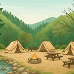 コテージやトレーラーハウス主体で、寝具や空調が整っているため、テント泊が不安な方でも利用しやすい施設です。まずは棟泊で雰囲気を掴み、慣れてからテントサイトに挑戦する使い方が現実的です。